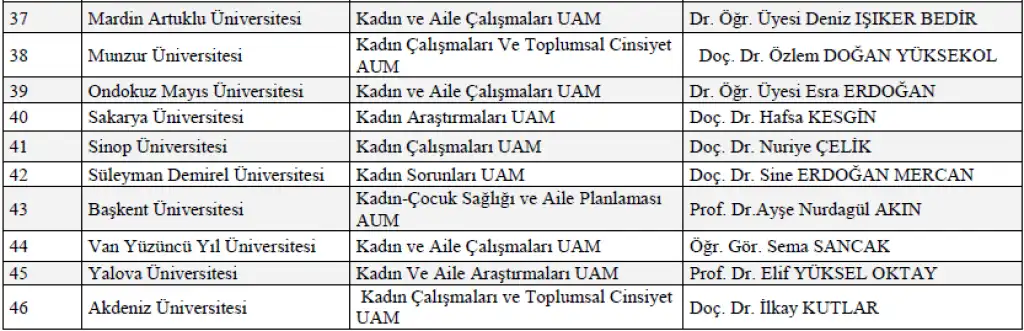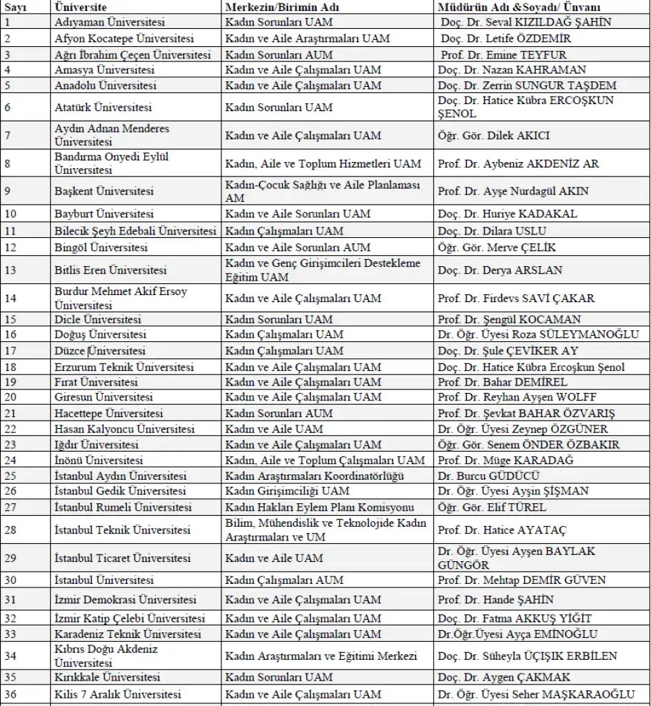 2- Kadın Çalışmaları Merkezlerinin üniversitelerde kadın akademisyenler tarafından