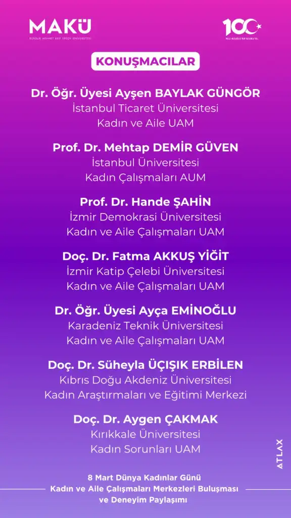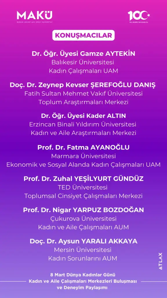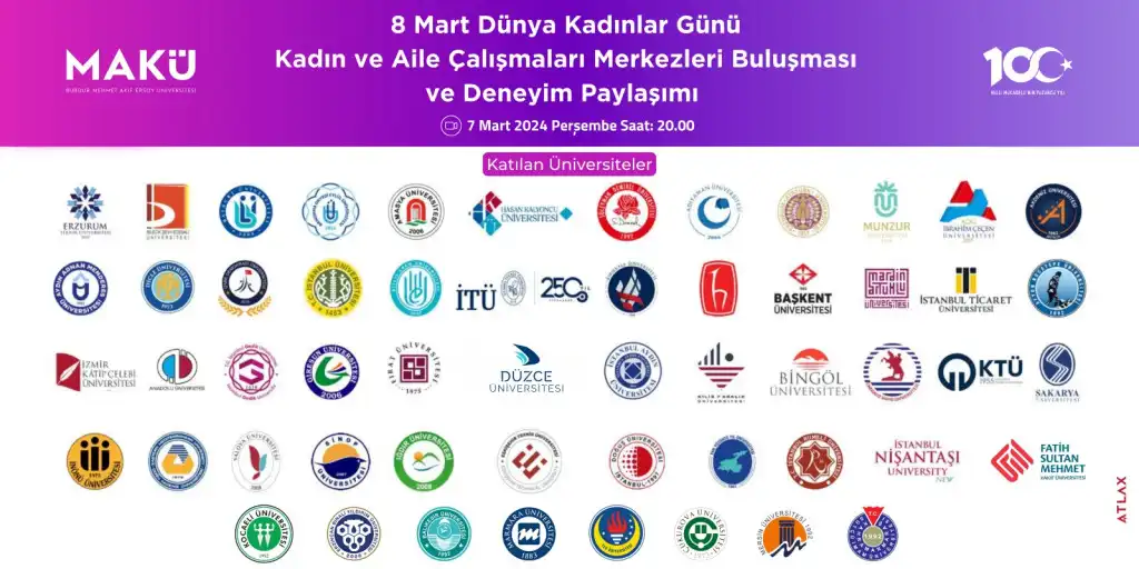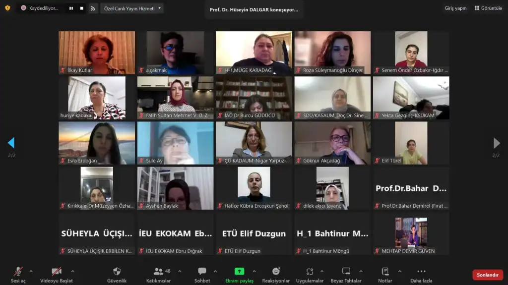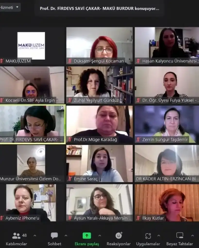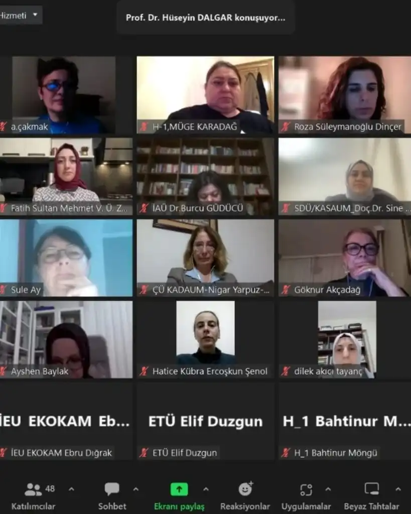 8 Mart Dünya Kadınlar Günü Etkinlikleri kapsamında Burdur Mehmet Akif Ersoy Üniversitesi Kadın ve Aile Çalışmaları Uygulama ve Araştırma Merkezi tarafından 7 Mart Saat:20.00 (Çevrimiçi) olarak düzenlenen “Kadın Çalışmaları Merkezleri Buluşması Ve Deneyim 20.00 (Çevrimiçi) olarak düzenlenen “Kadın Çalışmaları Merkezleri Buluşması Ve Deneyim Paylaşımı” etkinliği 64 üniversitenin Kadın Çalışmaları Merkezlerinin katılımıyla gerçekleşti. Kadın ve Aile Çalışmaları Uygulama ve Araştırma Merkezi Müdürü Prof. Dr. Firdevs SAVİ ÇAKAR açılış konuşmasında “8 Mart Dünya Kadınlar Günü kapsamında Üniversitelerin Kadın Çalışmaları Merkezleri arasında iş birliğini güçlendirmek ve ortak çalışmalar planlamak amacıyla bu buluşmayı düzenlediklerini, çok sayıda merkezin katılımından ve merkez müdürlerimizle birlikte olmaktan çok memnun olduklarını söyledi. Katılan ya da farklı programları nedeniyle katılamayan ancak destek olan merkez müdürlerimize teşekkür etti. En kısa zamanda yüz yüze ve daha geniş katılımlı bir programda birlikte olmayı temenni ettiklerini belirtti. Kadın Çalışmaları Merkezlerinin çalışmaları ile kadınların yaşamın her alanında güçlendirilmesi, daha fazla karar mekanizmalarında yer alması, kadınların cinsiyet ayrımına maruz kalmadığı ve eşitliğe dayalı bir yaşamı hedefleyen etkin ve sürdürülebilir politikalar geliştirilmesine katkı sağlanması amaçlamaktadır. Bugün burada birlikte bu hedefler doğrultusunda neler yapabileceğimizi ele alacağız. Katkı sunan tüm katılımcılarımıza teşekkür ediyorum“ dedi. Programa katılan Burdur Mehmet Akif Ersoy Üniversitesi Rektörü Prof. Dr. Hüseyin DALGAR konuşmasında “8 Mart Dünya Kadınlar Günü Kapsamında etkinliğe katılan tüm merkezlerimize teşekkür ederek, kadın merkezlerinin çalışmalarının toplumdaki kadına yönelik tutum ve davranışların olumlu yönde değişimine yön verecek çok önemli bir misyonu olduğunu vurguladı. Günümüzde geldiğimiz noktada artık kadın erkek eşsizliği kabul edilemez. Üniversitemizde yönetimde kadın temsilini önemsediklerini, yöneticilerimizin, akademisyenlerimizin ve idari kadrolarımızın da önemli bir oranda kadın çalışanlarımızdan oluştuğunu ve her zaman onları desteklediklerini vurguladı. Kadınların toplumdaki ve insanlık adına yüklendikleri misyon ve görevlerini takdire ayan buluyorum. Tüm kadınlarımızın 8 Mart Dünya Kadınlar Gününü kutladı. Avrupa Üniversiteler Birliği (EUA)’nın araştırma ve inovasyon komitesi üyesi, 2015-2022 yılları arasında Yükseköğretimde Akademide Kadın Çalışmaları ve Sorunları Biriminin kurucusu ve yürütücüsü olarak görev yapan Prof. Dr. Sezer Şener Komsuoğlu konuşmasında ” Bugün Türkiye’de 127 Üniversitede Kadın Çalışmaları Merkezleri bulunmakta ve Kadın çalışmalar yapılmaktadır. Bu çalışmalarda özellikle bilimsel çalışmaların ve yayınların çok önemli olduğunu belirtti. Bu çalışmanın da merkezler arası işbirliği ve süreklilik açısından önemli olduğunu vurguladı. Katılan Üniversitelerin Merkez Müdürleri tarafından yapılan konuşmalar ve deneyim paylaşımlarının ardından değerlendirmeye geçildi.