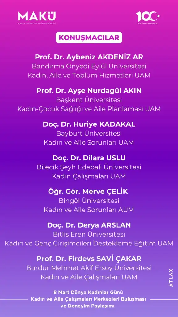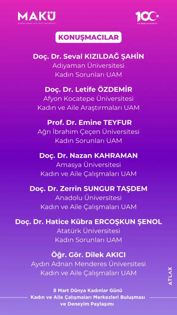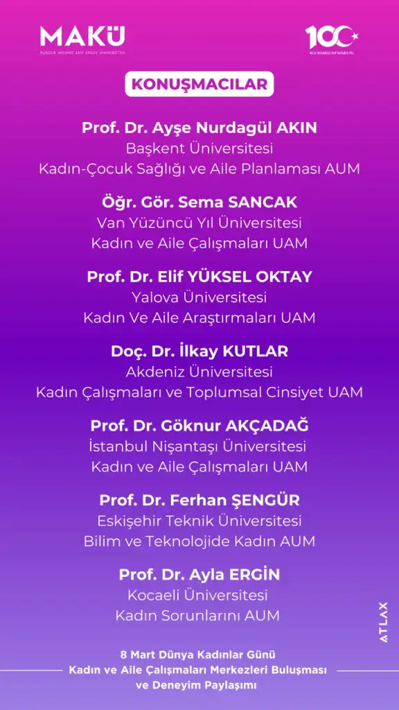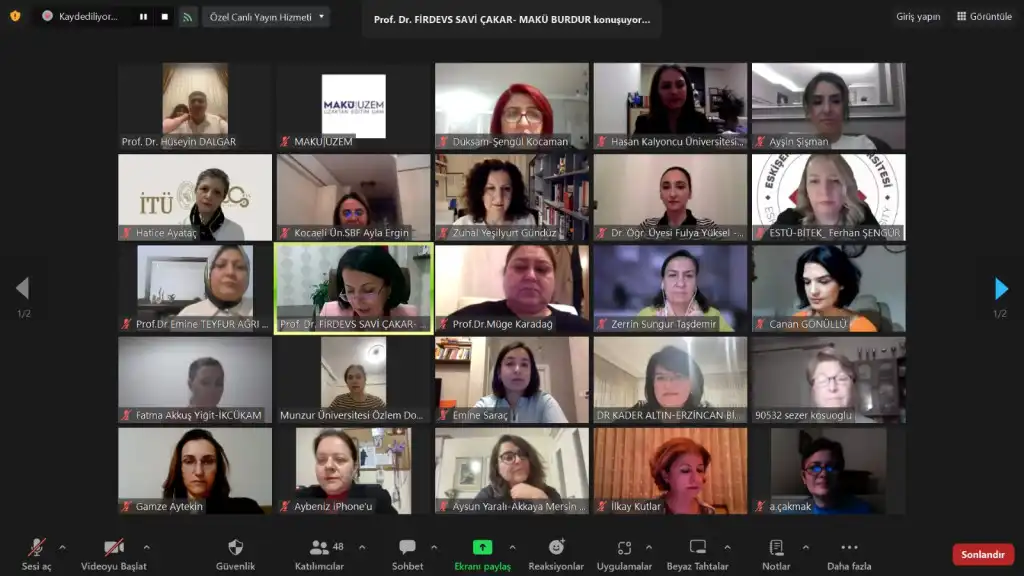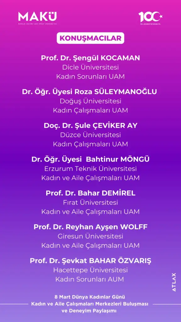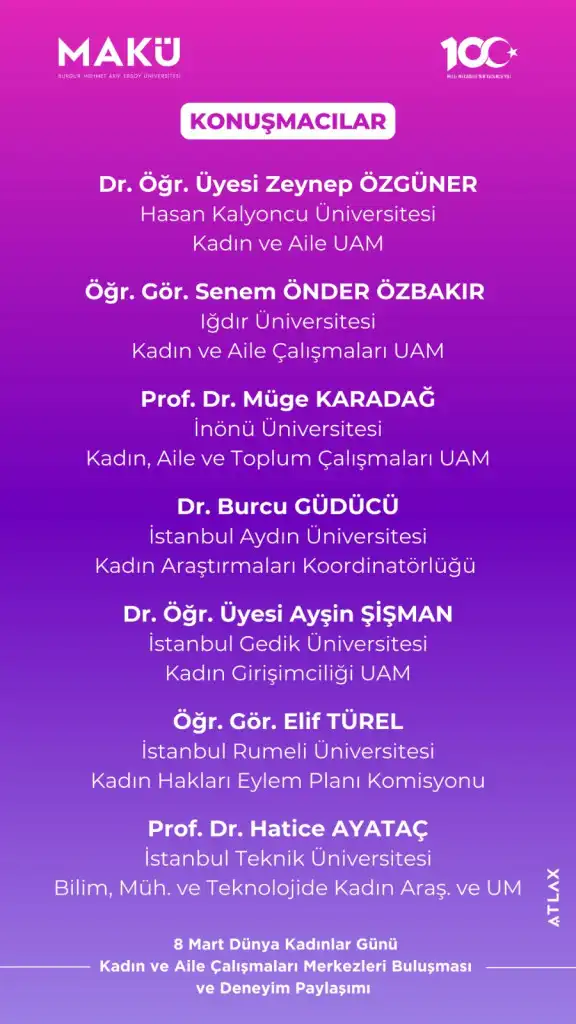 8 Mart Dünya Kadınlar Günü Etkinlikleri kapsamında Burdur Mehmet Akif Ersoy Üniversitesi Kadın ve Aile Çalışmaları Uygulama ve Araştırma Merkezi tarafından 7 Mart Saat:20.00 (Çevrimiçi) olarak düzenlenen “Kadın Çalışmaları Merkezleri Buluşması Ve Deneyim 20.00 (Çevrimiçi) olarak düzenlenen “Kadın Çalışmaları Merkezleri Buluşması Ve Deneyim Paylaşımı” etkinliği 64 üniversitenin Kadın Çalışmaları Merkezlerinin katılımıyla gerçekleşti. Kadın ve Aile Çalışmaları Uygulama ve Araştırma Merkezi Müdürü Prof. Dr. Firdevs SAVİ ÇAKAR açılış konuşmasında “8 Mart Dünya Kadınlar Günü kapsamında Üniversitelerin Kadın Çalışmaları Merkezleri arasında iş birliğini güçlendirmek ve ortak çalışmalar planlamak amacıyla bu buluşmayı düzenlediklerini, çok sayıda merkezin katılımından ve merkez müdürlerimizle birlikte olmaktan çok memnun olduklarını söyledi. Katılan ya da farklı programları nedeniyle katılamayan ancak destek olan merkez müdürlerimize teşekkür etti. En kısa zamanda yüz yüze ve daha geniş katılımlı bir programda birlikte olmayı temenni ettiklerini belirtti. Kadın Çalışmaları Merkezlerinin çalışmaları ile kadınların yaşamın her alanında güçlendirilmesi, daha fazla karar mekanizmalarında yer alması, kadınların cinsiyet ayrımına maruz kalmadığı ve eşitliğe dayalı bir yaşamı hedefleyen etkin ve sürdürülebilir politikalar geliştirilmesine katkı sağlanması amaçlamaktadır. Bugün burada birlikte bu hedefler doğrultusunda neler yapabileceğimizi ele alacağız. Katkı sunan tüm katılımcılarımıza teşekkür ediyorum“ dedi. Programa katılan Burdur Mehmet Akif Ersoy Üniversitesi Rektörü Prof. Dr. Hüseyin DALGAR konuşmasında “8 Mart Dünya Kadınlar Günü Kapsamında etkinliğe katılan tüm merkezlerimize teşekkür ederek, kadın merkezlerinin çalışmalarının toplumdaki kadına yönelik tutum ve davranışların olumlu yönde değişimine yön verecek çok önemli bir misyonu olduğunu vurguladı. Günümüzde geldiğimiz noktada artık kadın erkek eşsizliği kabul edilemez. Üniversitemizde yönetimde kadın temsilini önemsediklerini, yöneticilerimizin, akademisyenlerimizin ve idari kadrolarımızın da önemli bir oranda kadın çalışanlarımızdan oluştuğunu ve her zaman onları desteklediklerini vurguladı. Kadınların toplumdaki ve insanlık adına yüklendikleri misyon ve görevlerini takdire ayan buluyorum. Tüm kadınlarımızın 8 Mart Dünya Kadınlar Gününü kutladı. Avrupa Üniversiteler Birliği (EUA)’nın araştırma ve inovasyon komitesi üyesi, 2015-2022 yılları arasında Yükseköğretimde Akademide Kadın Çalışmaları ve Sorunları Biriminin kurucusu ve yürütücüsü olarak görev yapan Prof. Dr. Sezer Şener Komsuoğlu konuşmasında ” Bugün Türkiye’de 127 Üniversitede Kadın Çalışmaları Merkezleri bulunmakta ve Kadın çalışmalar yapılmaktadır. Bu çalışmalarda özellikle bilimsel çalışmaların ve yayınların çok önemli olduğunu belirtti. Bu çalışmanın da merkezler arası işbirliği ve süreklilik açısından önemli olduğunu vurguladı. Katılan Üniversitelerin Merkez Müdürleri tarafından yapılan konuşmalar ve deneyim paylaşımlarının ardından değerlendirmeye geçildi.
